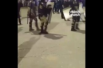 В районе аэропорта Каспийска толпа провокаторов набросилась на полицейскую спецтехнику