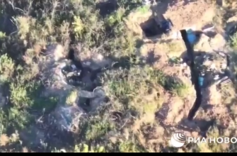 После обстрела артиллерии ВС РФ укроп осматривает укрытие своих побратимов , точнее то, что от него осталось