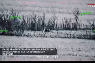Экипаж разведывательно-ударного вертолета Ка-52 уничтожил боевую бронированную машину ВСУ вместе с десантом ударом управляемой ракеты