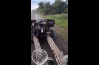 Уничтожение, предположительно, позиции украинской гаубицы огнем артиллерии российских десантников
