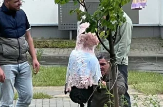 В Троицке мигранты устроили забой барана прямо на детской площадке — подвесили его на турник, чтобы стекала кровь