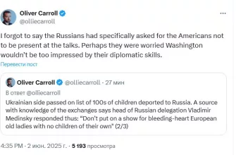 Мединский призвал украинцев не ломать комедию. Об этом сообщает журналист The Economist Оливер Кэрролл
