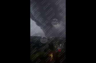 Момент вчерашнего срабатывания зенитной ракеты, предположительно, ЗРПК «Панцирь-С1», у верхних этажей многоэтажки в Старом Осколе Белгородской области