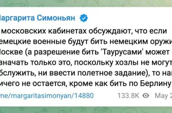 Главред RT Маргарита Симоньян сообщила, что «в высоких кабинетах» допускают вариант нанесения ударов по Берлину в том случае, если все же немецкие Taurus будут атаковать российскую территорию