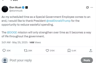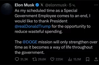 Илон Маск говорит Белому дому «пока» и покидает пост главы департамента эффективности правительства (DOGE) по сокращению расходов