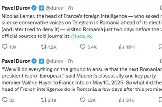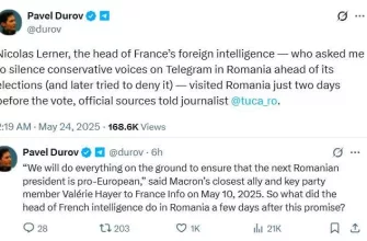 Глава внешней разведки Франции посетил Румынию всего за два дня до президентских выборов, заявил Дуров со ссылкой на румынского журналиста