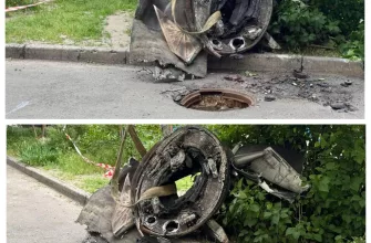 Обломок хвостовой части ракеты ОТРК «Искандер-М», прилетевшей ночью по Киеву