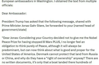 Журналист PBS News Ник Шифрин опубликовал якобы письмо Трампа к премьер-министру Норвегии