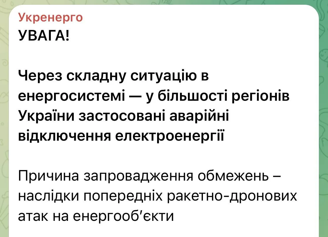 Министерство энергетики Украины сообщает о нанесении ударов по объектам энергетики в Черниговской, Днепропетровской и Харьковской областях, а также в подконтрольной части ДНР.