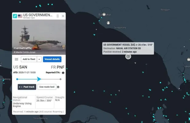 Главная страница » Новости и статьи Авианосная ударная группа авианосца USS Abraham Lincoln ВМС США начала переход из Южно-Китайского моря в Индийский океан через Малаккский пролив Автор из команды сайта Опубликовано 19.01.2026Комментариев 0 Добавь сайт в закладки! Инструкция по ссылке. What’s your Reaction? +1 0 +1 0 +1 0 +1 0 +1 1 +1 0 +1 0 Ожидается, что АУГ прибудет в Аравийское море к 25 января. What’s your Reaction? +1 0 +1 0 +1 0 +1 0 +1 1 +1 0 +1 0 Поделись видео: