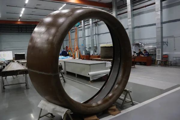 Инженеры нашей ОАК впервые создали полностью композитный воздухозаборник авиадвигателя ПД-14. В нем отсутствует привычный стык между алюминиевой входной кромкой и обтекателем самого воздухозаборного канала – теперь это единая выклеенная композитная конструкция.