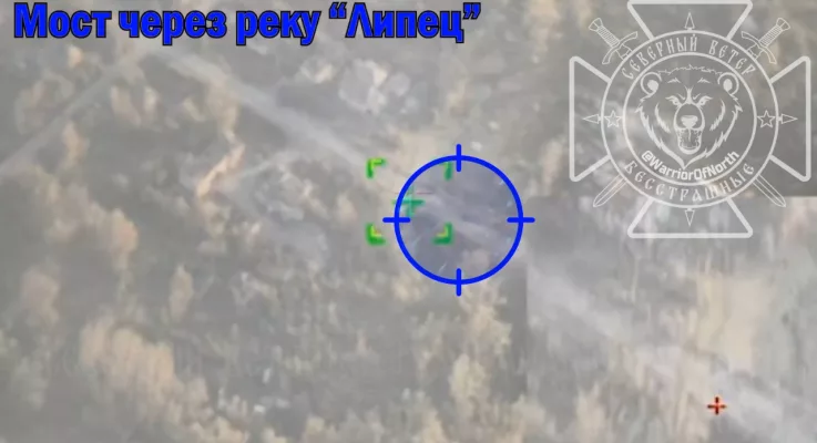 Точным авиаударом уничтожен мост через р. Липец в н.п. Липцы. Корректировку и фиксацию результата поражения осуществляет БпЛА группировки «Север».