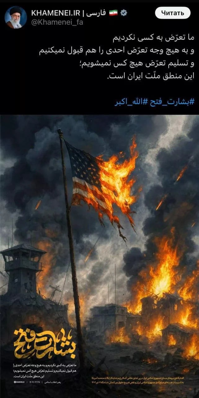 Он приложил к посту картинку с горящим флагом США