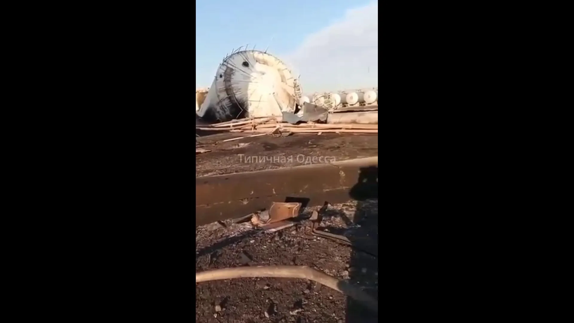 Это была серия прямых попаданий, после чего возник пожар. Повреждены все резервуары, здание насосной станции, операторские и весовые, технические помещения, разрушено ограждение.