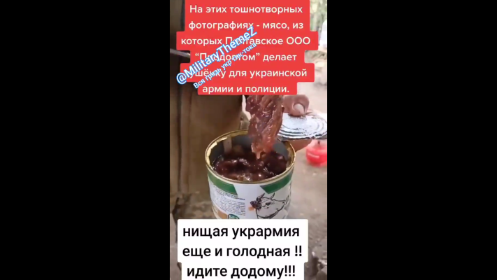 Украинцы показали «тушеночку» «Риднэ сэло», где вместо самой тушенки речи Зеленского какая-то тошнотворная масса.
