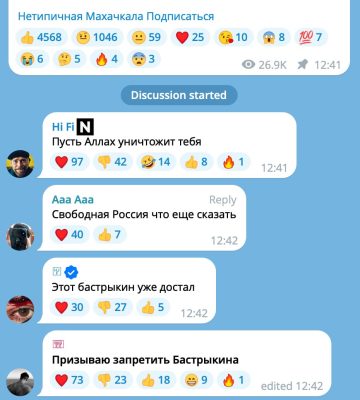 В каналах кавказских республик РФ комментаторы массово угрожают главе СК и требуют «выхода из состава России». Его обвиняют в ненависти к исламу, хотя Бастрыкин указывает на проблему распространение в РФ радикального исламизма.