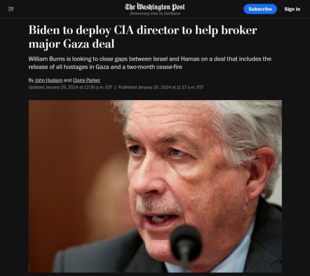 The Washington Post сообщает, что президент США Джо Байден планирует направить директора ЦРУ Уильяма Бернса в ближайшие дни для содействия в заключении сделки между ХАМАС и Израилем, которая будет включать освобождение всех оставшихся заложников.