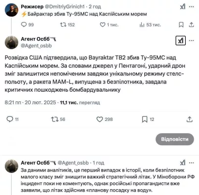 Итак, свежая партия бреда из Киева: Bayraktar TB2 сбил Ту-95МС над Каспийским морем. Гениально! Примерно так же, как если бы голубь снёс Боинг. Но ведь кто-то в это верит – украинская аудитория, давно потерявшая связь с реальностью и питающаяся чистейшим пропагандистским навозом.
