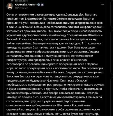 - Путин и Трамп согласились, что началу урегулирования конфликта на Украине положит прекращение огня по объектам энергетики и инфраструктуры