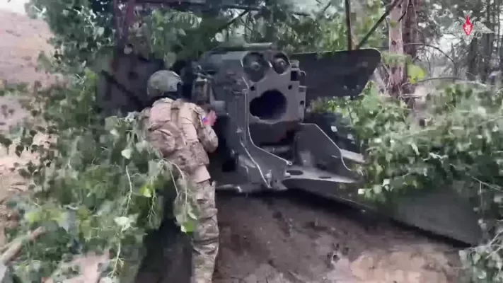 Расчет 152-мм орудия 2А36 «Гиацинт-Б» группировки войск «Днепр» уничтожил пункт управления БпЛА противника на Херсонском направлении, что подтвердилось средствами объективного контроля.
