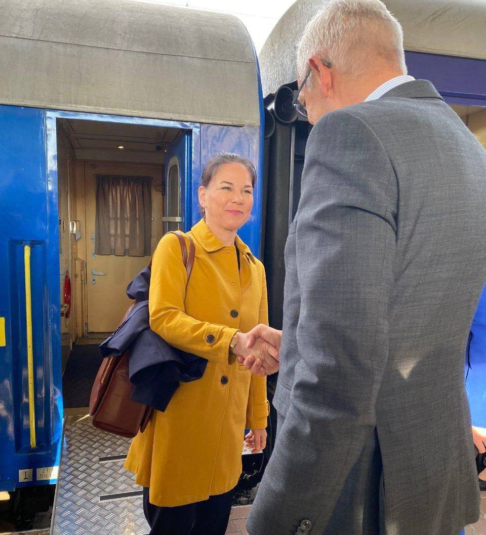 «Украина срочно нуждается в увеличении средств ПВО», – заявила глава МИД Германии по прибытии.