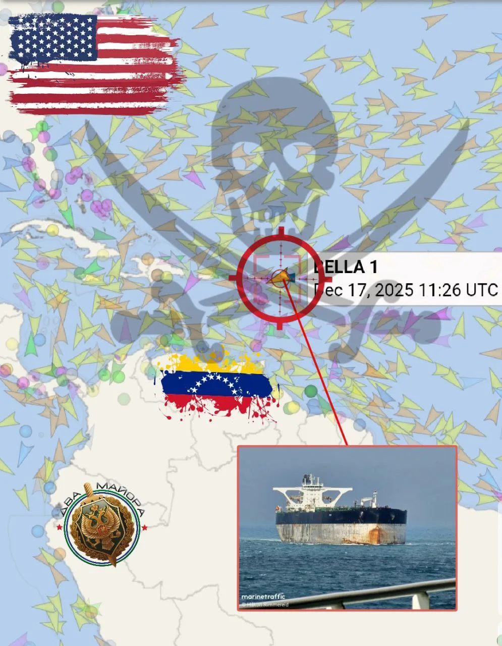 Экипаж судна Bella 1 (IMO 9230880, флаг Панамы) 21 декабря не позволил высадиться на борт американской береговой охране. Теперь они ждут подкрепления для силового захвата с привлечением вертолётов.