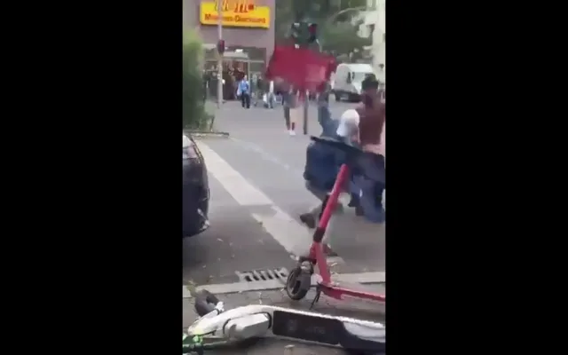 Один из них кричит «Аллах Акбар!», затем блокирует движение и начинает кричать.