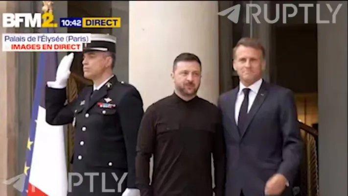 - Просроченный снова без костюма, но Макрон все равно рад его видеть – он не удержался и трижды погладил Зеленского по спине.