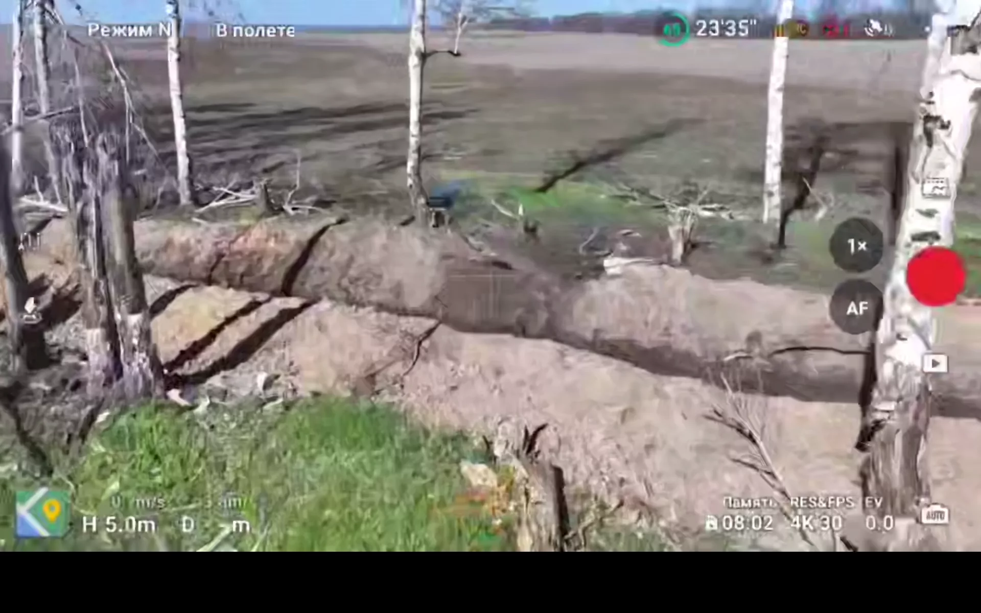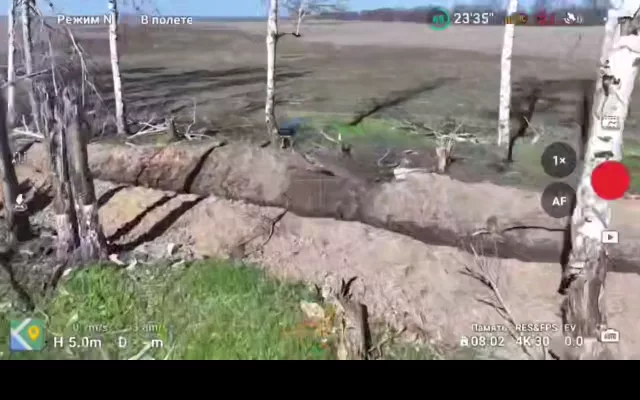 «Битва» длилась недолго – винты российской птички лихо перерубили оптоволоконный кабель вражеского БпЛА, после чего тот успешно воткнулся в землю.