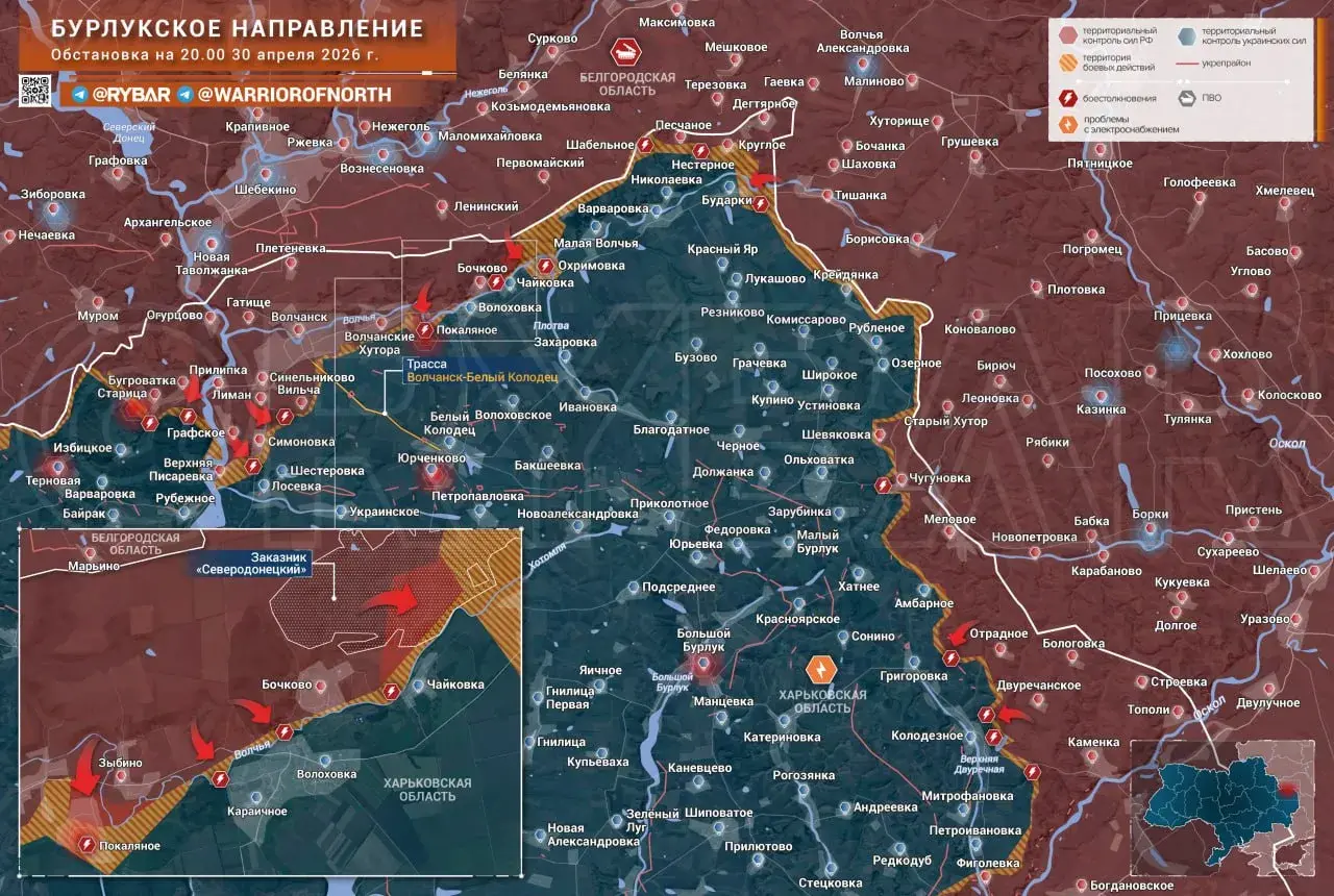 📌С учетом роста активности подразделений российских войск на Сумском направлении, на Бурлукском также стоит ожидать сохранения высокой активности ВС РФ. Задачей минимум, по всей видимости, будет являться выход на рубеж всей реки Волчья.