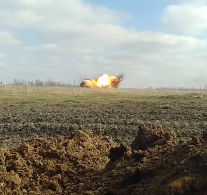 Возле с. Орловка Донецкой области. Геопривязка LA: (48.166167, 37.658806) БMП ВСУ наехала на мину…