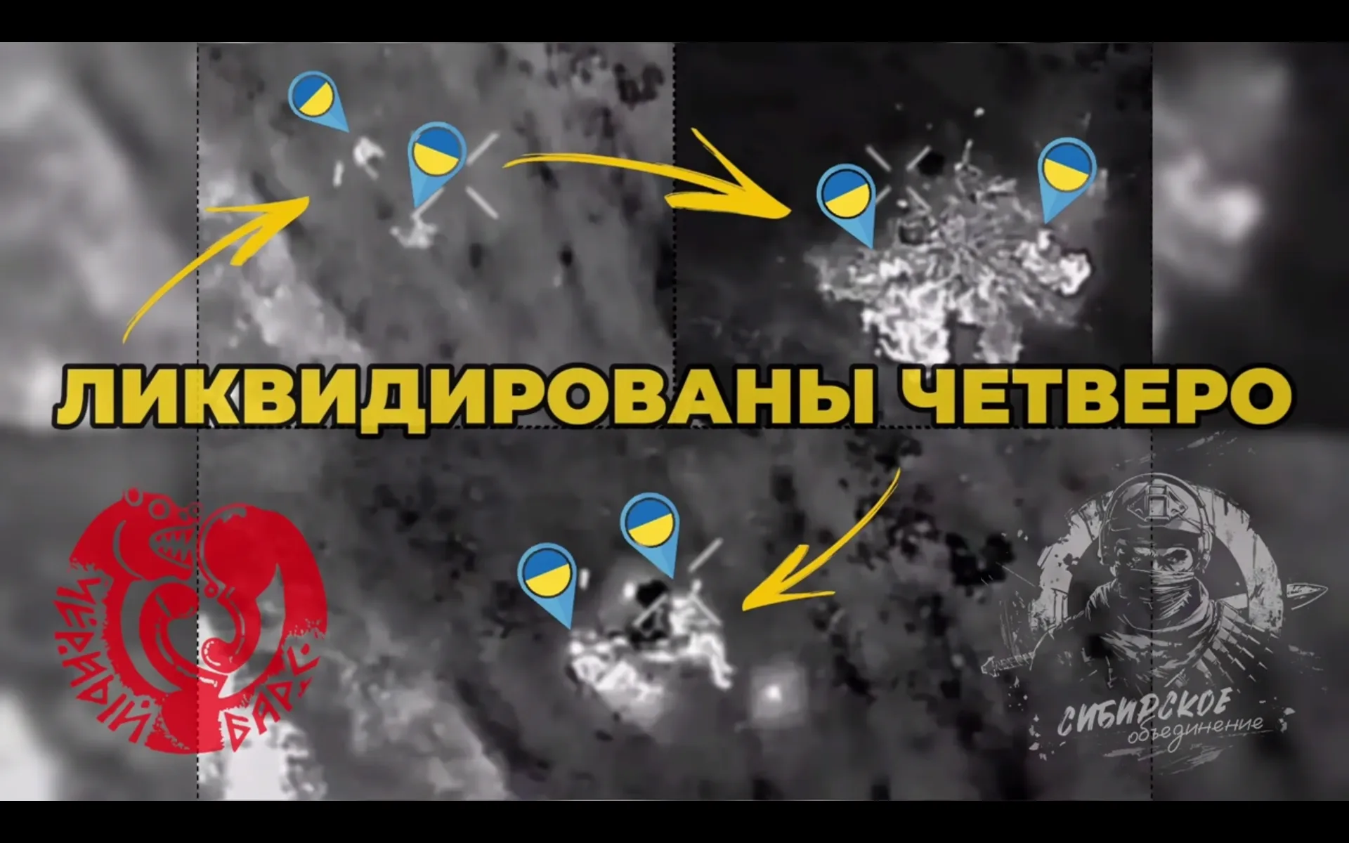 — Расчёт БпЛА бригады «Чёрные барсы» уничтожил двоих бойцов 59-й ошбр СБС.