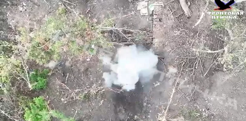 Очередная боевая работа перед штурмом позиций. Благодаря такому постоянному контролю, противник не может даже покинуть свои блиндажи, чтобы осмотреться.