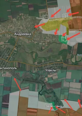 Наши штурмы атакуют в районе Зеленовка — Улаклы и юго-восточной окраины Константинополя, а также в направлении Разлива и Новоочеретоватого. В Новоочеретоватом противник в результате огневого воздействия подразделений ВС РФ оттянулся к середине села.