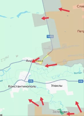 Штурмовые подразделения ВС РФ продвигаются к Константинополю с севера через Андреевку и с юго-востока.
