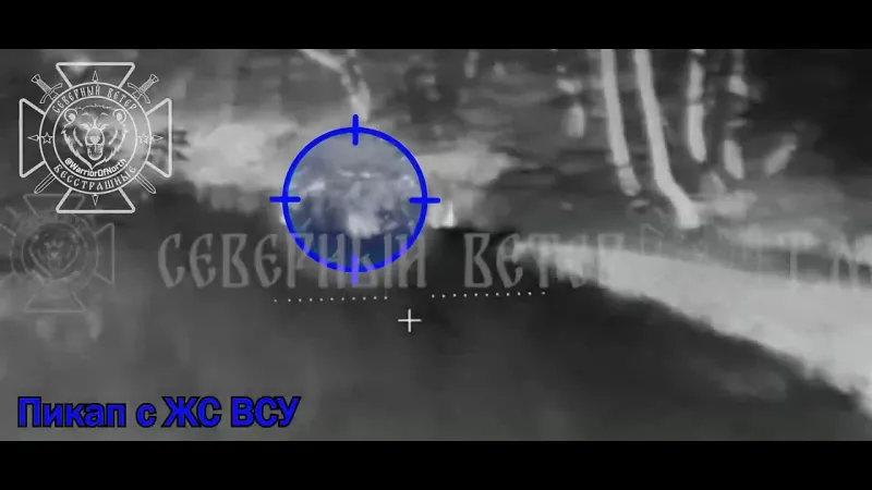 Разведчики Северян вскрыли выдвижение пикапа ВСУ из села Бугаёвка (Харьковская область) в направлении позиций наших войск рядом с Волчанском.