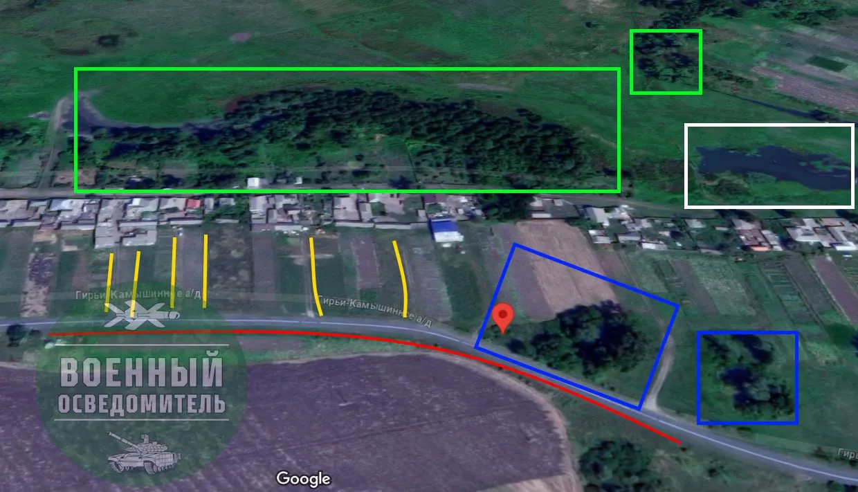 Похоже, что после разгрома колонны ВСУ у соседней деревни Гирьи, ВСУ остались на окраинах Камышного. Попытки противника расширить фронт в южном направлении от Суджи продолжаются.