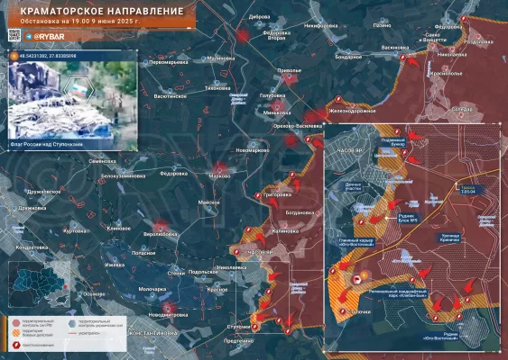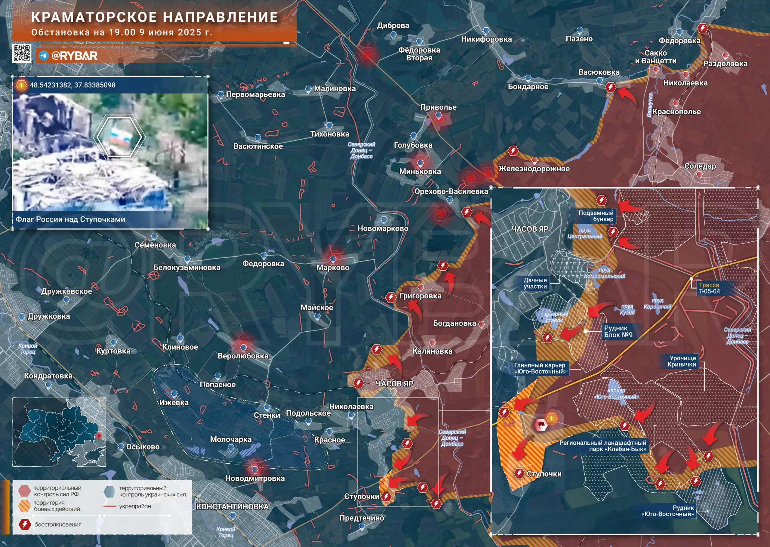 ВС РФ продолжают методично продвигаться в направлении на Константиновку и стремятся установить полный контроль над Часов Яром. Взятие этих населенных пунктов позволит нашей армии вплотную приблизиться к южным границам Славянско-Краматорской агломерации.