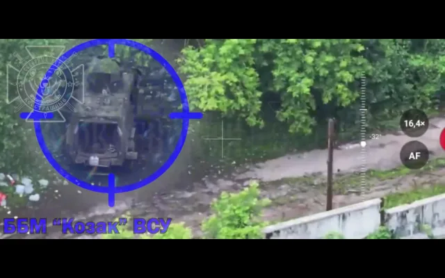 На окраине н.п.Медведовка (Черниговская область) противник припарковал в лесополосе ББМ «Козак», рассчитывая использовать бронемашину для подвоза припасов и переброски штурмовых групп.