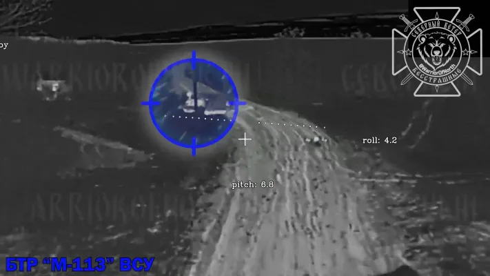 Наши операторы БпЛА вскрыли выдвижение второй за сутки штурмовой группы ВСУ на американском БТР М-113. Враг вновь намеревался перебросить личный состав в направлении села Отрадное (Двуречанский район), южнее которого проходит линия боевого соприкосновения.