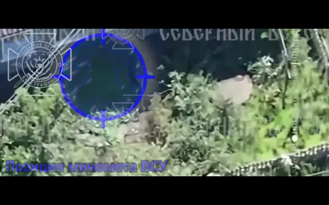 Операторы FPV-дронов Северян вскрыли местоположение орудия и нанесли прицельное поражение, уничтожив вражеский миномет.