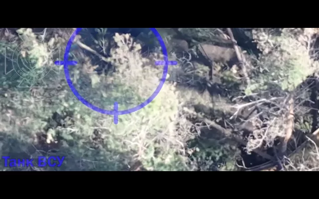 В окрестностях села Липцы наша разведка вскрыла танк ВСУ на замаскированной позиции. По цели отработали операторы FPV 11 АК ЛенВО.