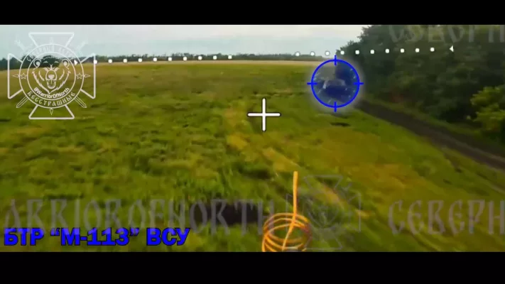 На кадрах объективного контроля наши операторы БпЛА 34-й горной мотострелковой бригады ГВ «Север» выследили, догнали и уничтожили вражеский американский БТР «М-113», перевозивший штурмовые группы врага на позиции в окрестностях Мирополья.