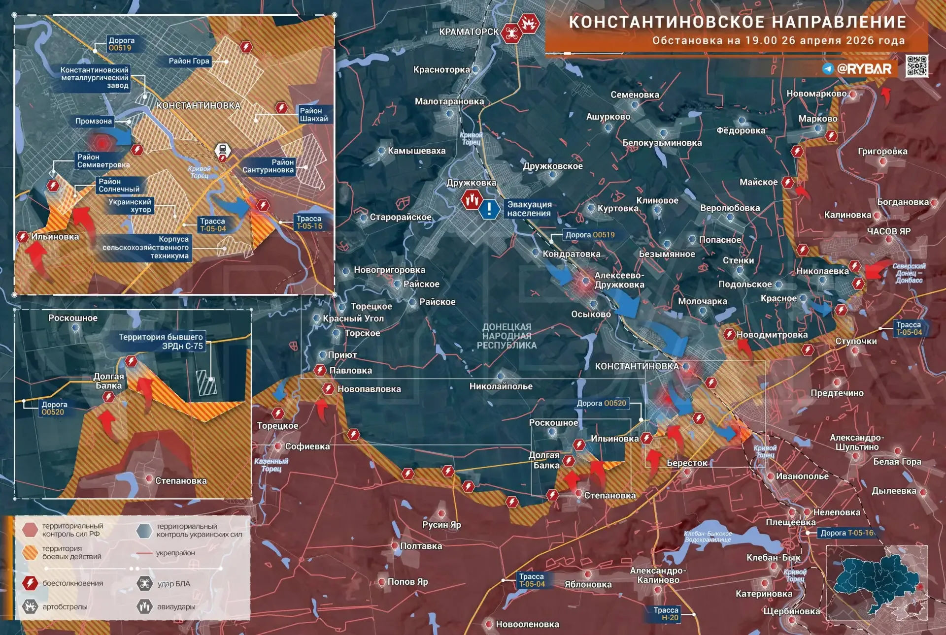 ❗️По сложившейся конфигурации фронта можно ожидать, что основные ресурсы ВС РФ будут направлены на наступление на западном фланге направления. Освобождение Долгой Балки и Ильиновки откроет им дорогу на Алексеево-Дружковку, через которую проходят основные маршруты снабжения группировки ВСУ как в самой Константиновке, так и Часовом Яре.