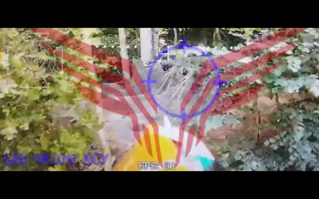 На кадрах объективного контроля наши операторы FPV нанесли прицельное поражение по американской САУ М-109, замаскированной в лесном массиве Юнаковской сельской общины.