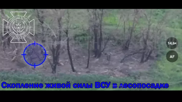 - Затем операторы БпЛА вскрыли перемещение личного состава противника. Дроноводы Северян смогли отследить маршрут перемещения украинских оккупантов, которые вышли на позиции к своим «побратимам» в лесном массиве.
