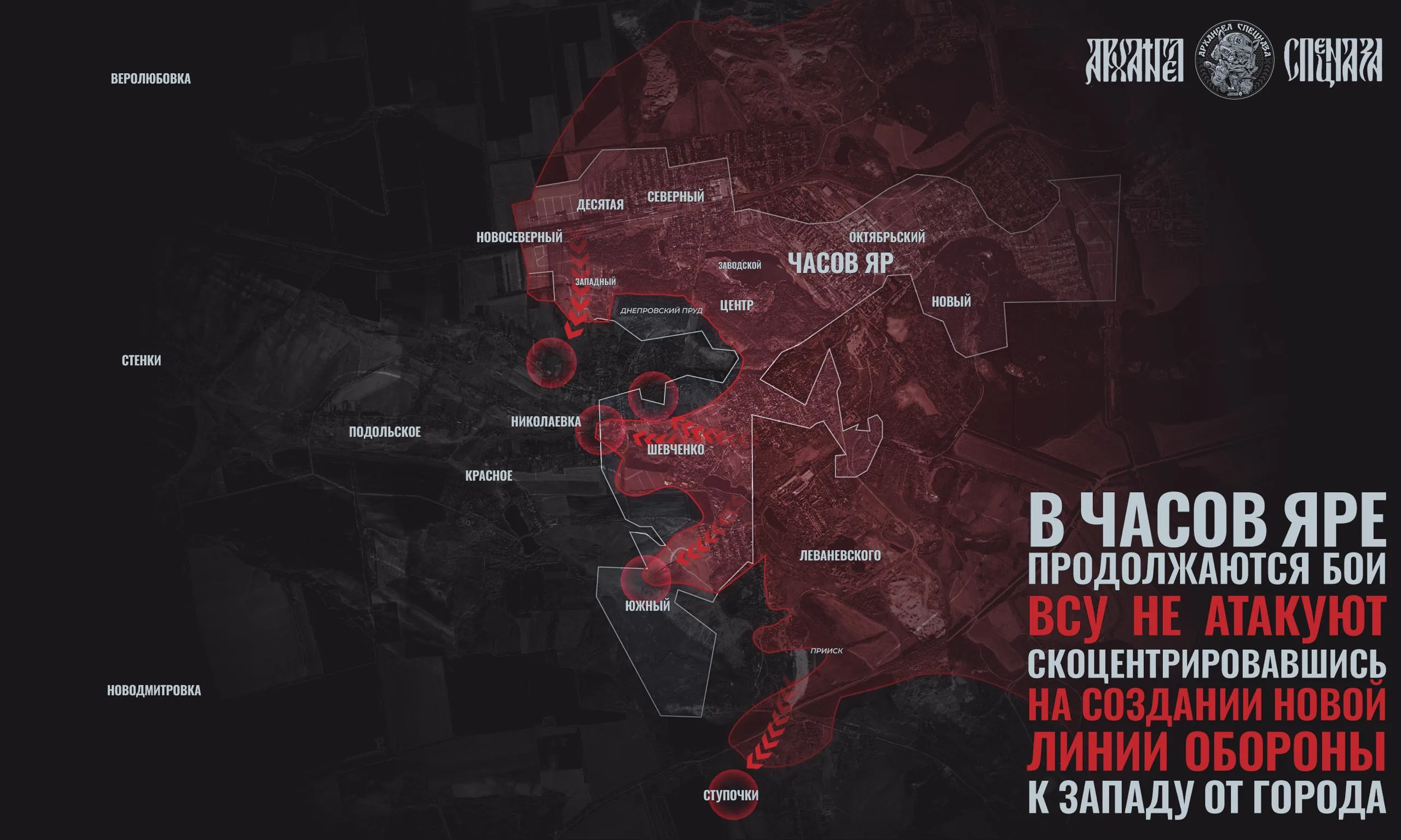 💭Большая часть Часов Яра под полным контролем наших войск, но продолжаются бои в микрорайонах Шевченко, Леваневского и Южный, где передний край остаётся в тумане войны из-за регулярных боев.