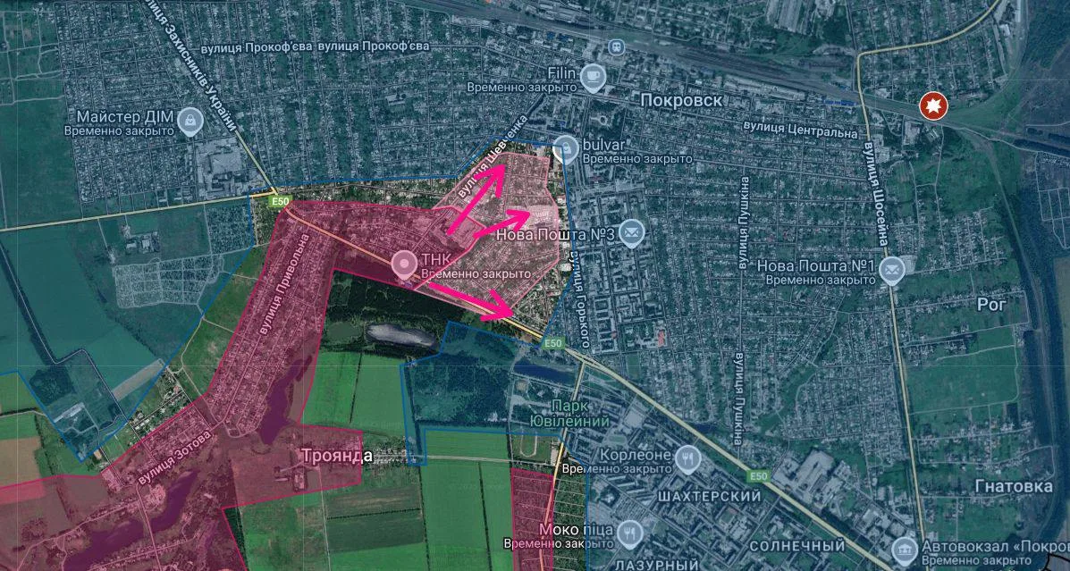 Населённый пункт Троянда сохраняет статус «серой зоны». Противник не удерживает его в полном объёме, российские силы также не закрепились окончательно. Однако его контроль имеет критическое значение: потеря Троянды позволит ВС РФ обойти Покровск с юга и дестабилизировать оборону противника.