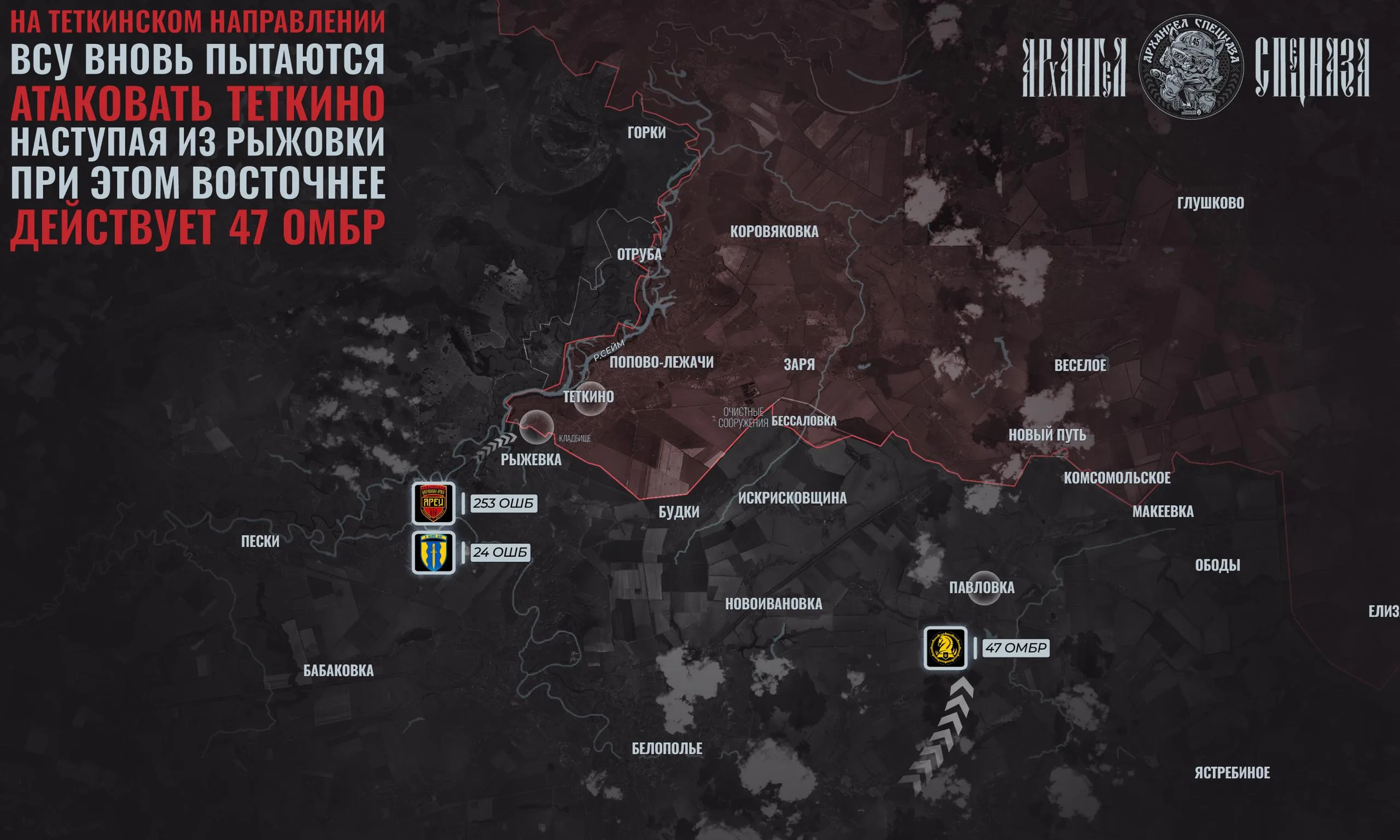 💭В Рыжевке противник активно атакует в направлении Теткино. На южной окраине села то и дело появляются штурмовые группы 253 ОШБ.