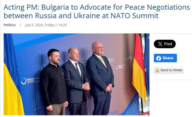 ▪️Премьер Болгарии Главчев заявил, что на саммите НАТО София предложит начать мирные переговоры между Украиной и Россией.